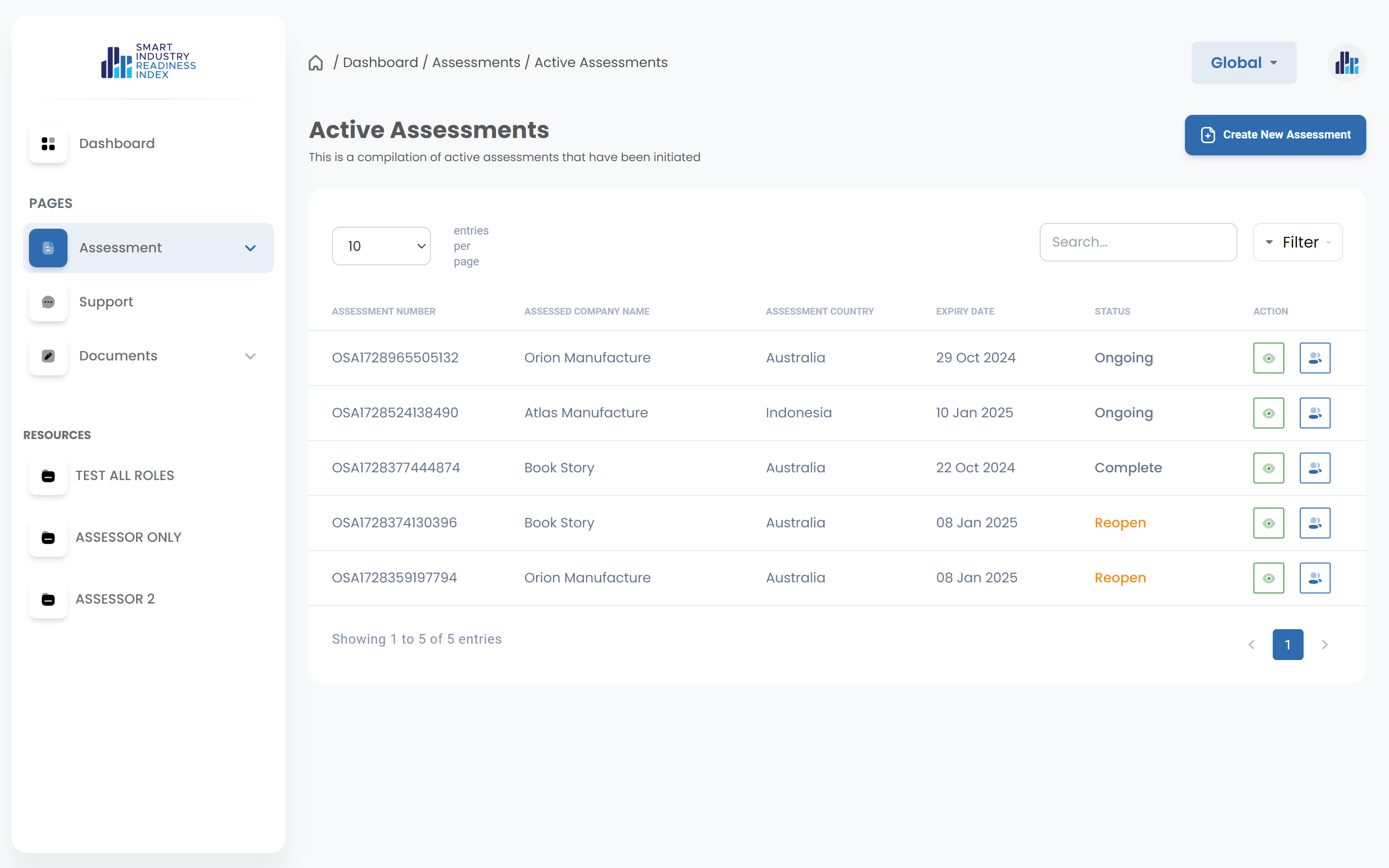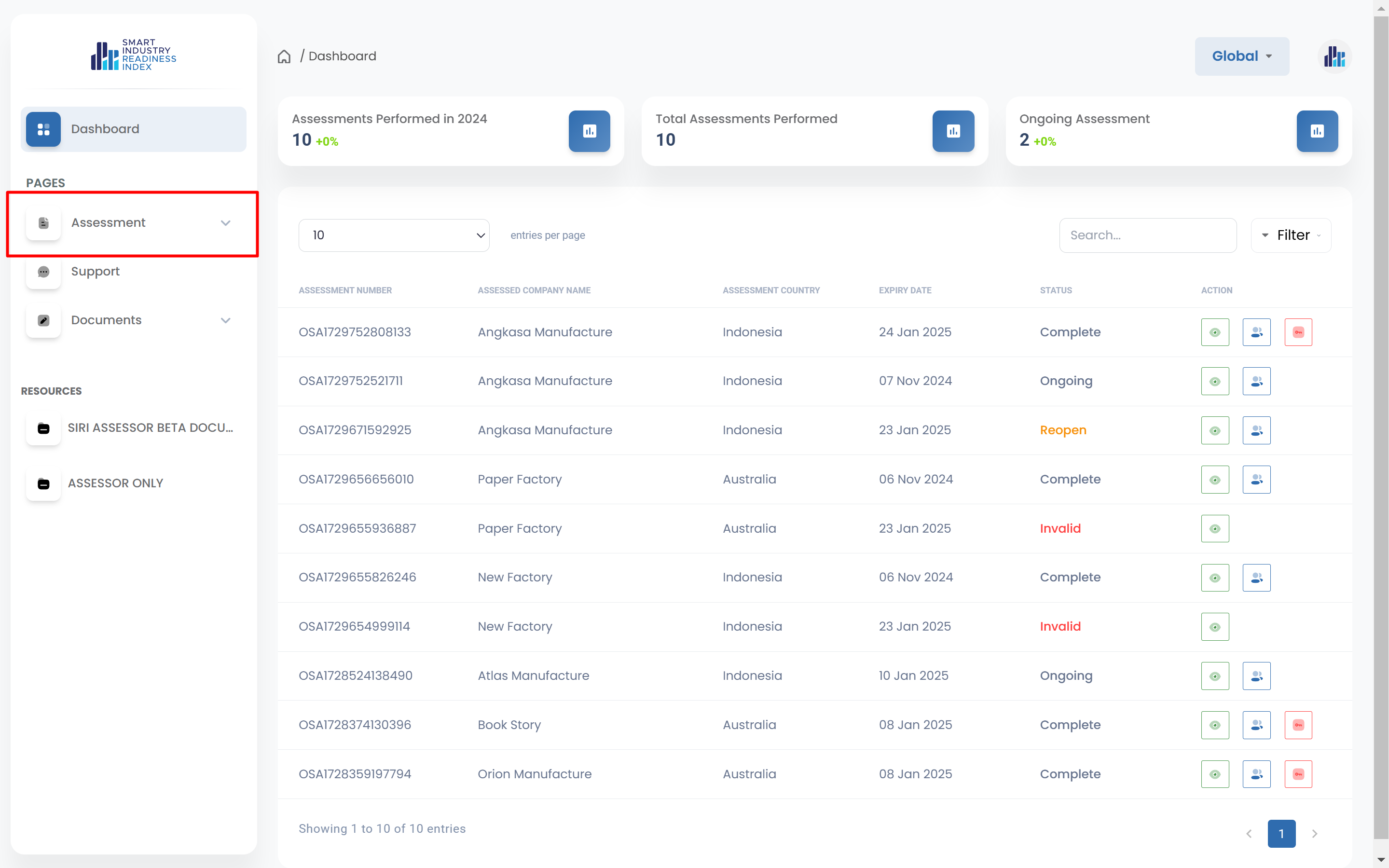 To access the Assessment, on the left sidebar menu click on 'Assessment'.