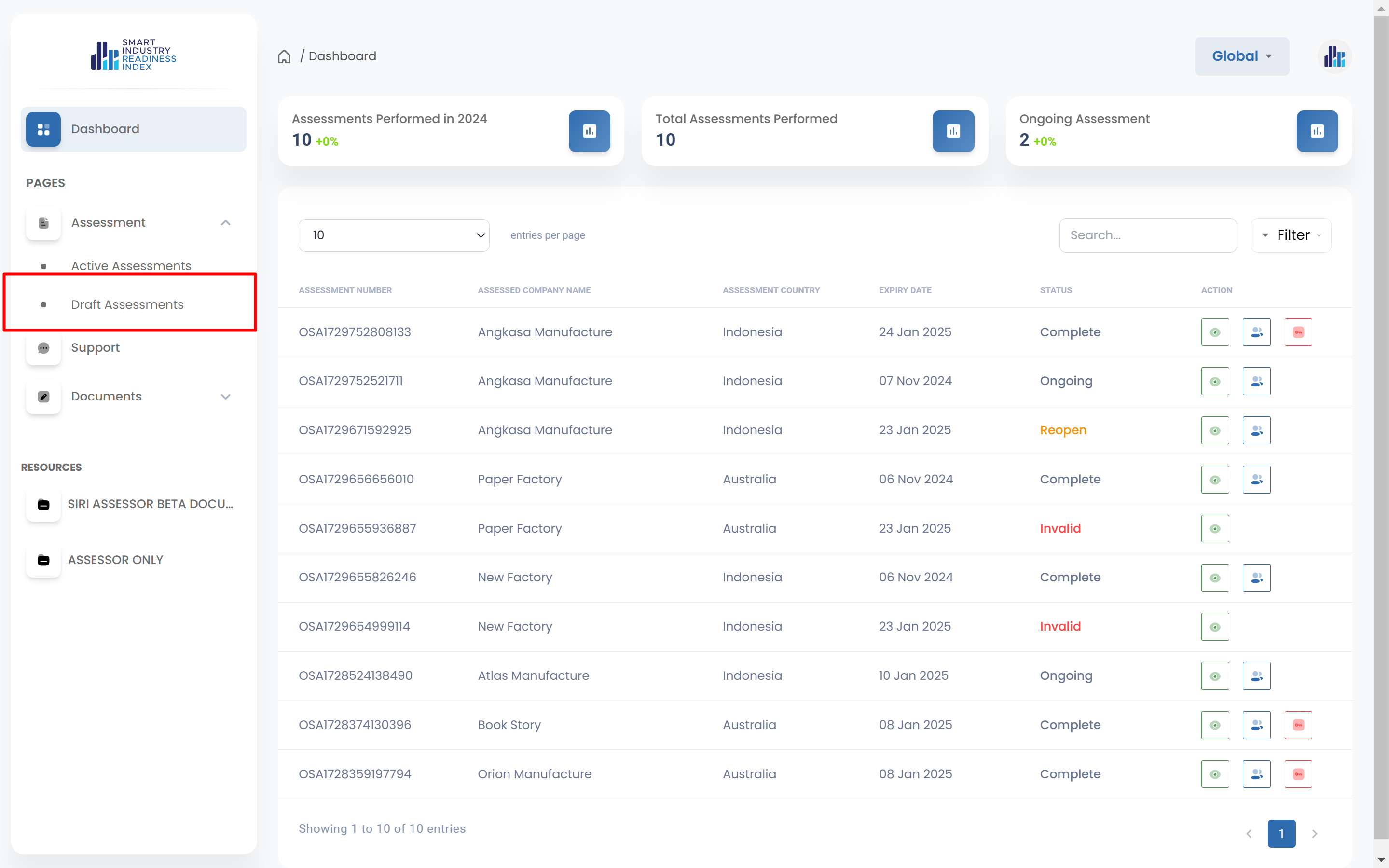 If you want to see your draft assessment, click on the 'Draft Assessment' menu.