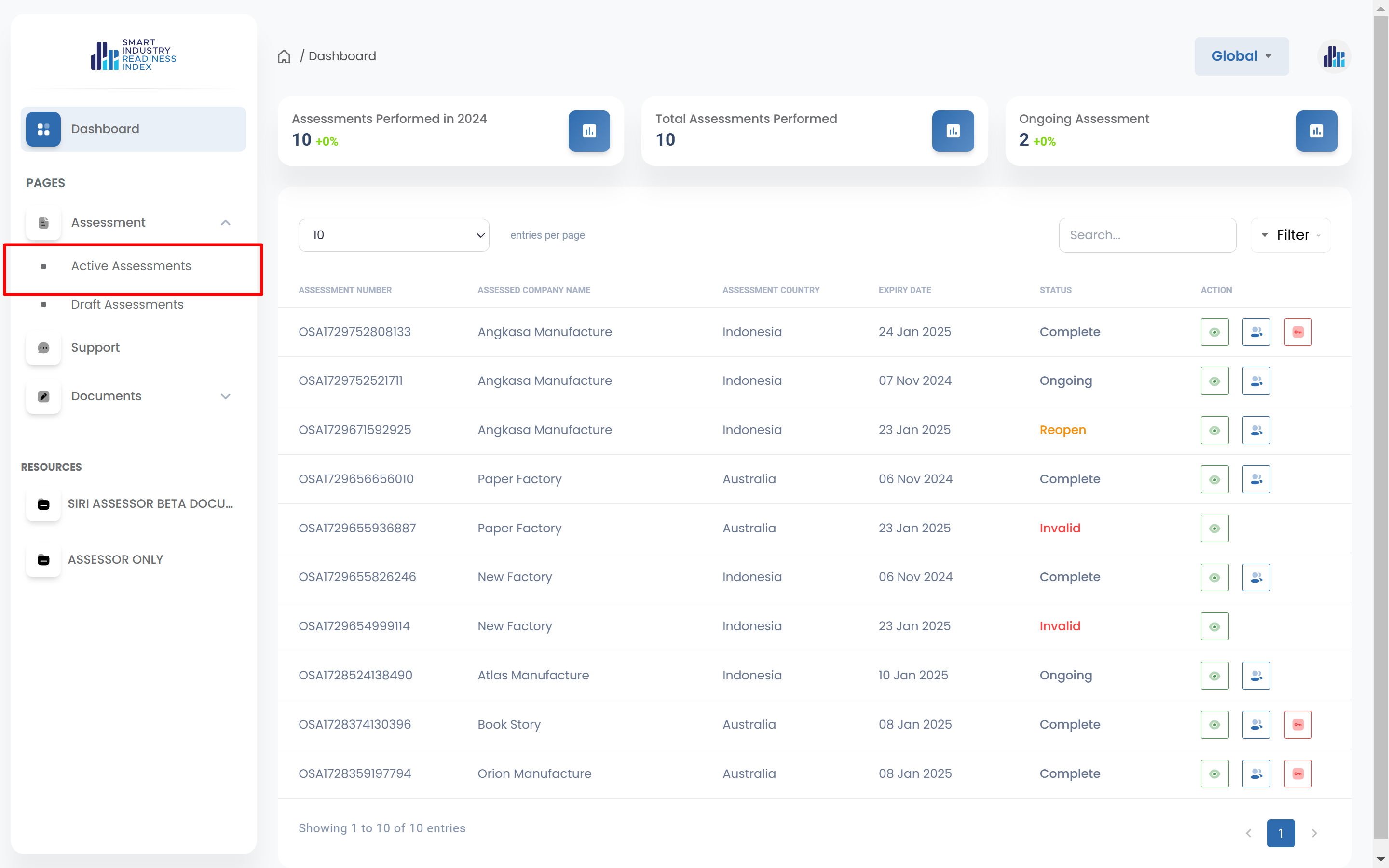 There will be a sub-menu, Active Assessments and Draft Assessments. If you want to create a new assessment and/or continue your assessment click on the 'Active Assessment' menu.