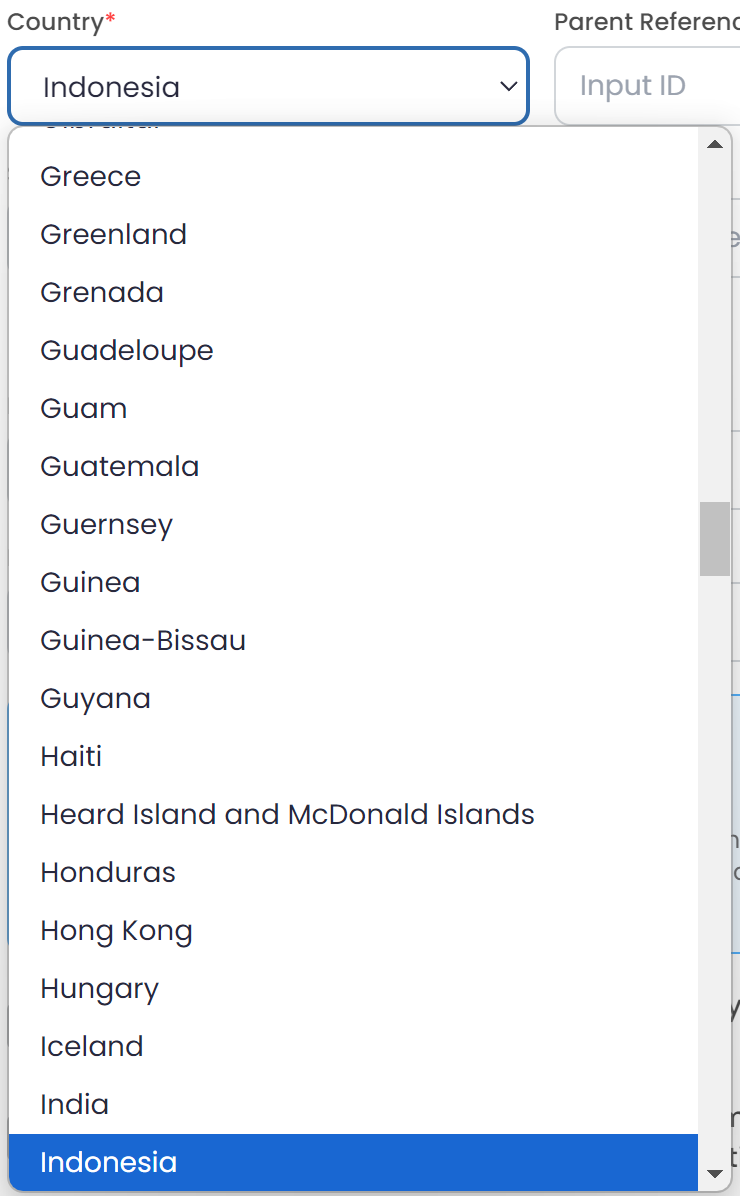 - The ‘Country’ field is automatically filled in with the country you choose when you verify your profile details the first time you log in to the SIRI portal. But if the country where the assessment is conducted is different, you can choose the country in the 'Country' field. This is a mandatory field.