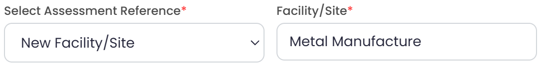 - If you choose Facility/Site in the ‘Assessment Reference’ field, input the facility or site name where the assessment is conducted in the ‘Facility/Site’ field. This is a mandatory field.