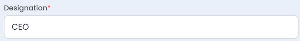 - Input the executive/contact designation in the 'Designation' field. This is a mandatory field.