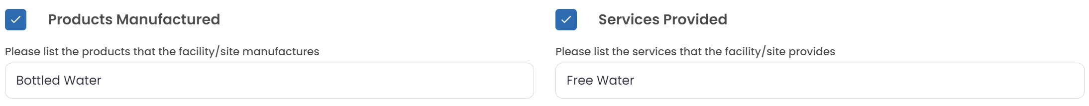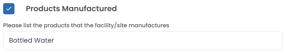 - If the facility/site that you are assessing is manufacturing a product, tick on the 'Manufactures the Following Product' option and input the product in the ‘Product’ field.