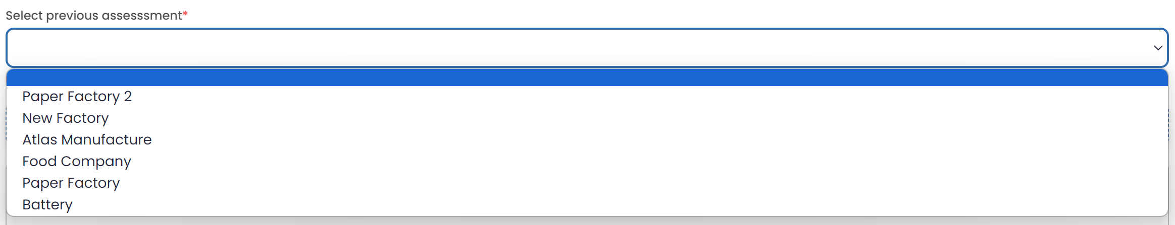 You can select the parent company/subsidiary company from your previous assessment by switching the 'Select from previous assessment' toggle.