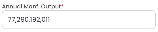 - Input the annual manufacturing output in the 'Annual Manf. Output' field. This is a mandatory field.