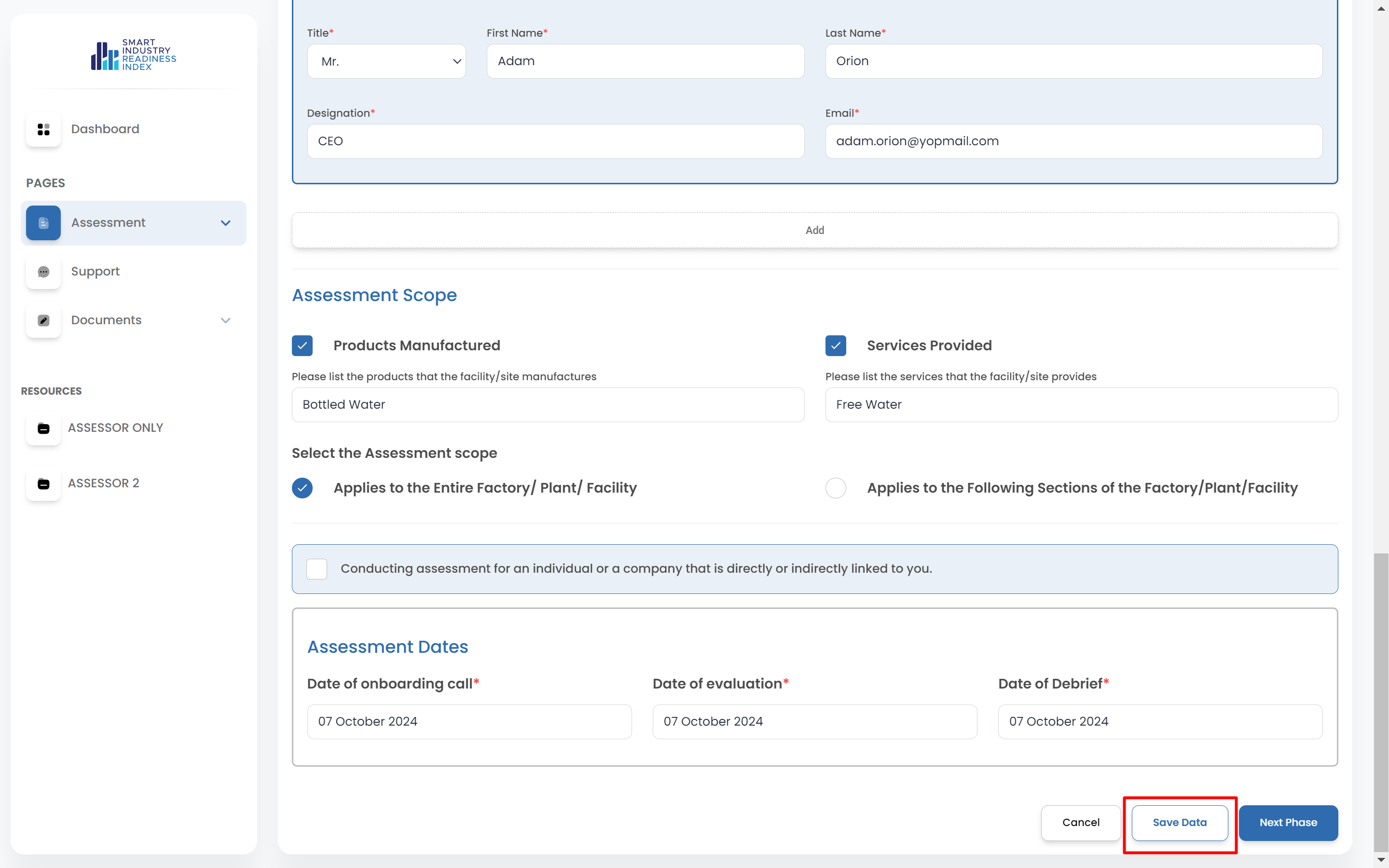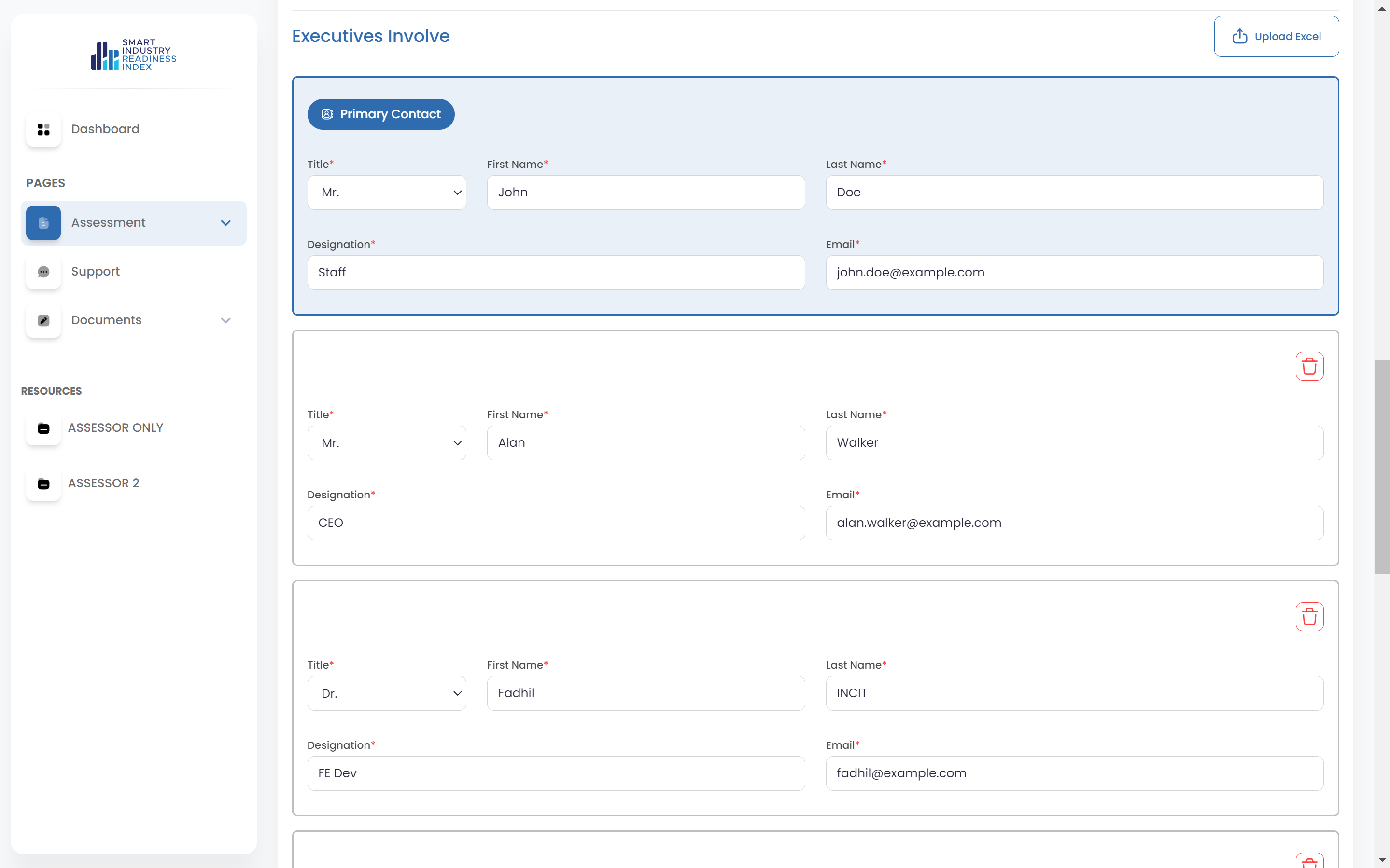 The Executive Involve section will be automatically filled with the key contact person information provided in the pre-assessment form pop-up. But you can still edit the executive’s involved information.