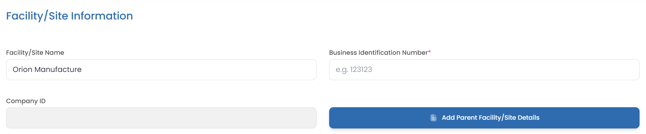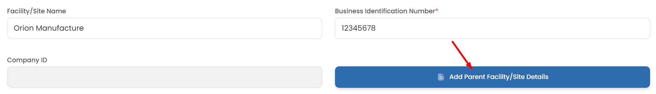 - If the facility/site has a parent business, you can add it by clicking on the 'Add Parent Facility/Site Details' button.