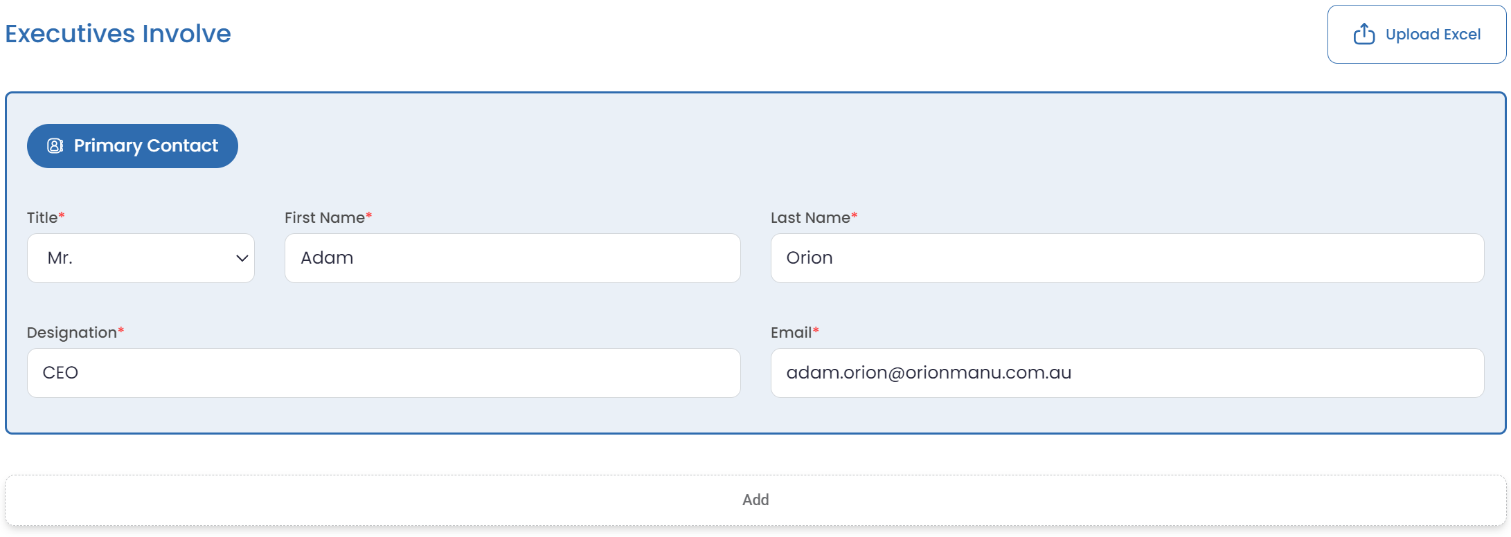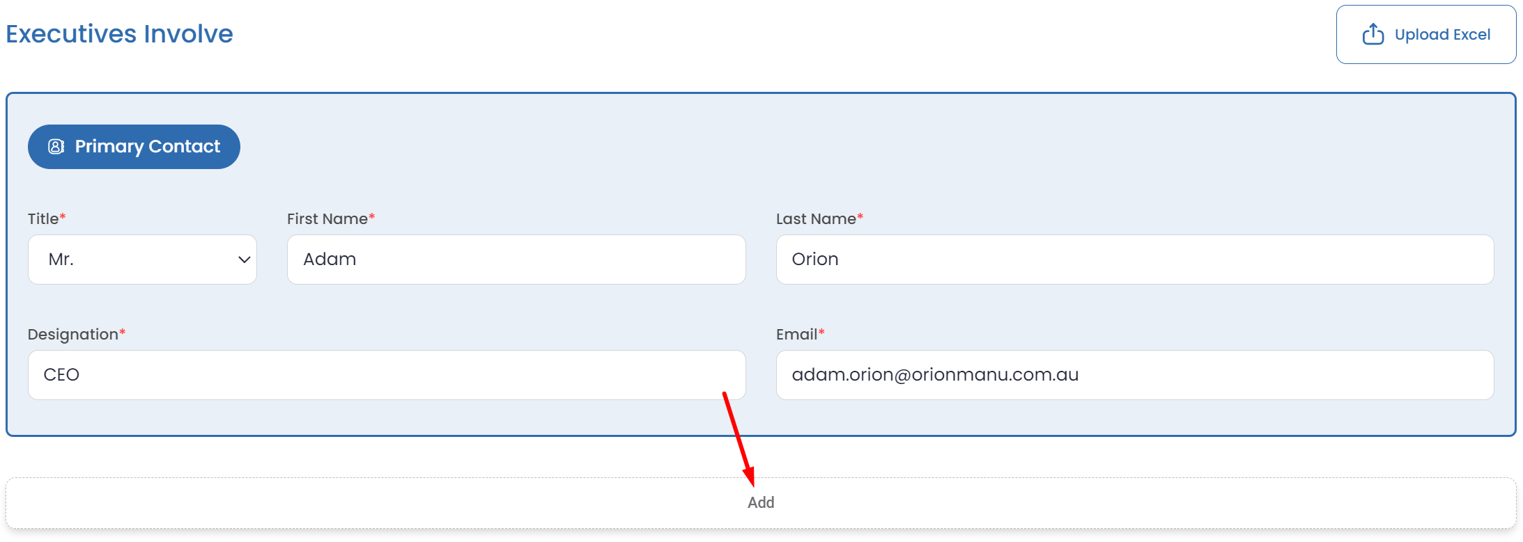 - You can add more than one executive/contact by clicking on the 'Add' button.