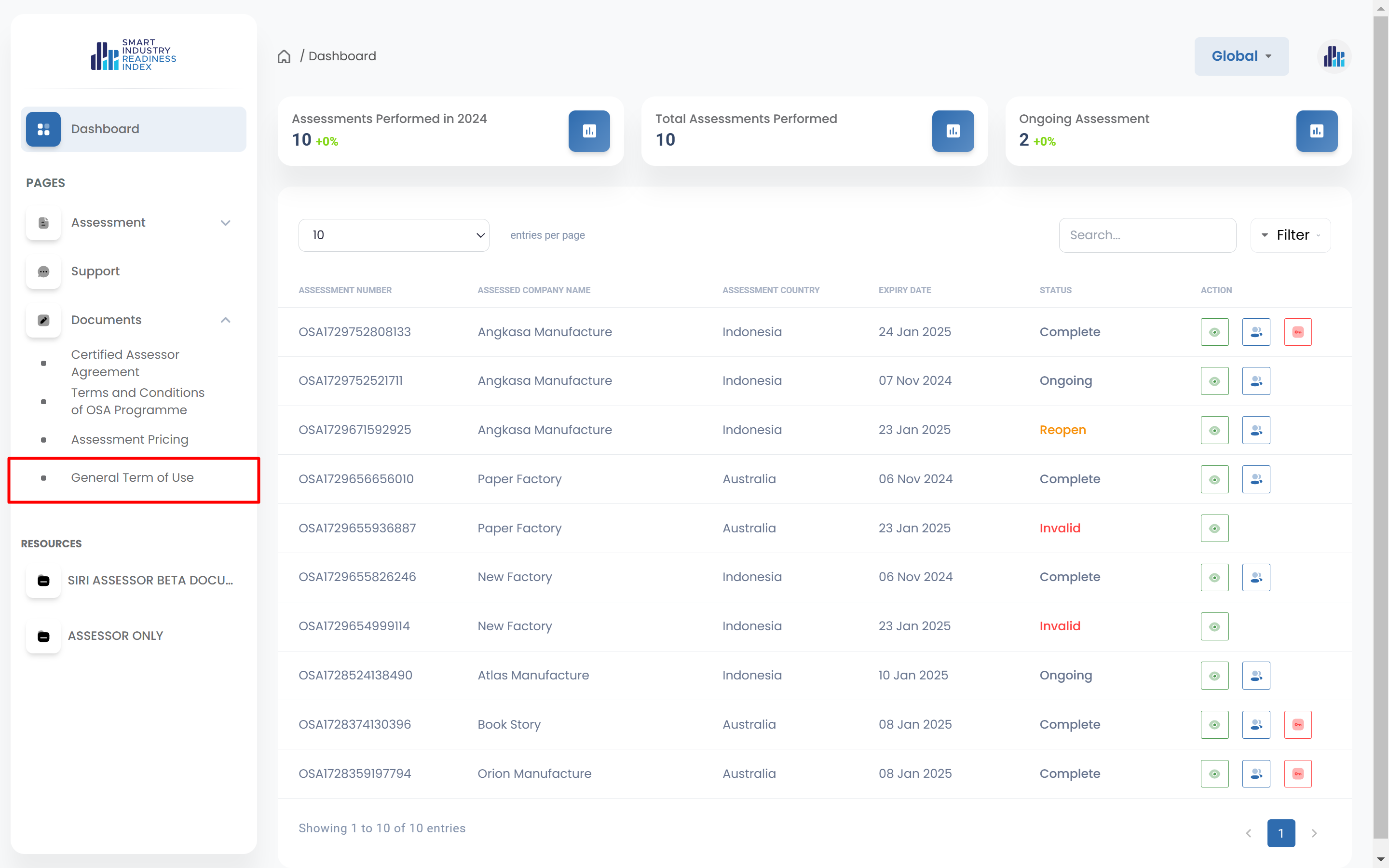 To view General Terms of Use document, click on the 'General Term of Use' menu at the left sidebar.