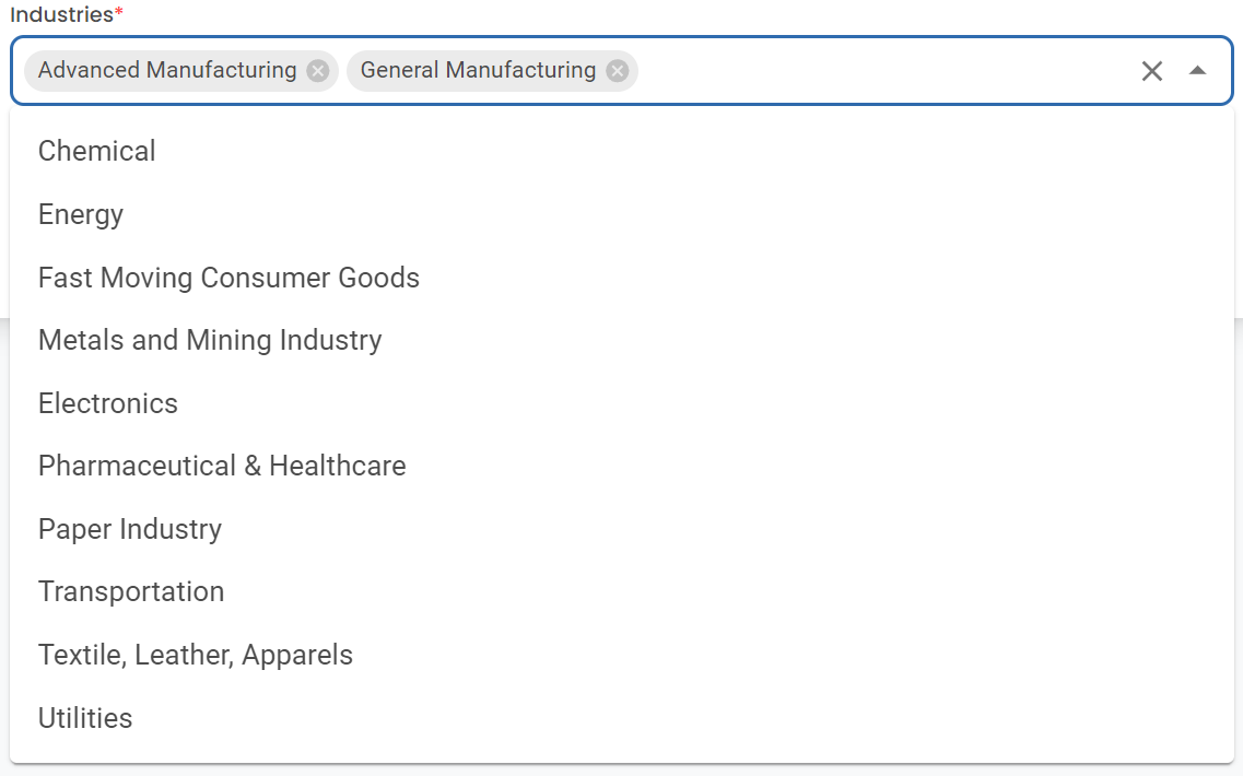 - Choose your industry from the 'Industry' field. You can choose more than one industry. This is a mandatory field.